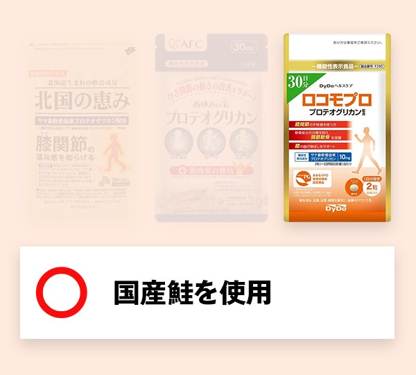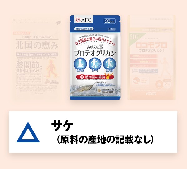 ロコモプロは、原料の産地は「国産」と表記されているものの、具体的な地域や、天然か養殖かの記載はありませんでした。