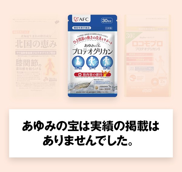 惜しくも、あゆみの宝はⅡ型コラーゲンは非変性ですが、プロテオグリカンには「非変性」の表記がありません。
