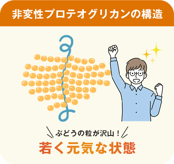 しかし、特別な技術で抽出した「プロテオグリカン」は、抽出前後で構造が変わらない「非変性(高純度)」となります。