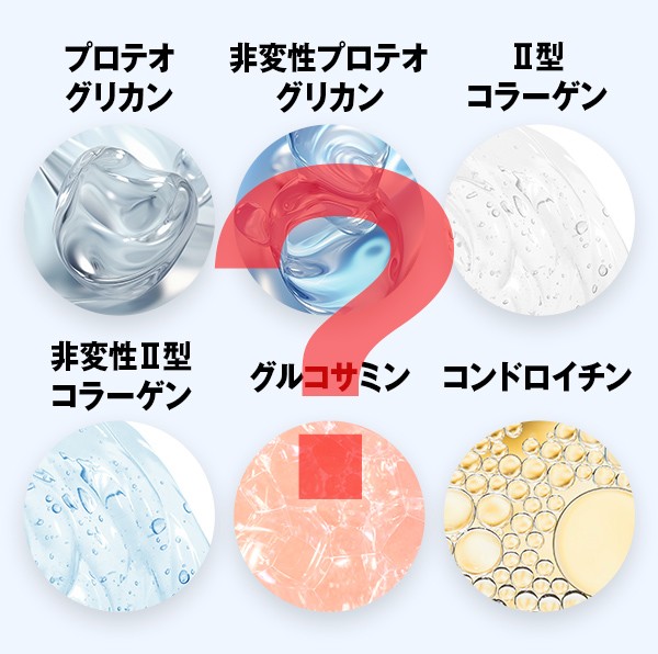 大切なのは、体内の軟骨と同じ構造を保った「非変性」の成分を補うこと。こちらも商品を見比べてみましょう。