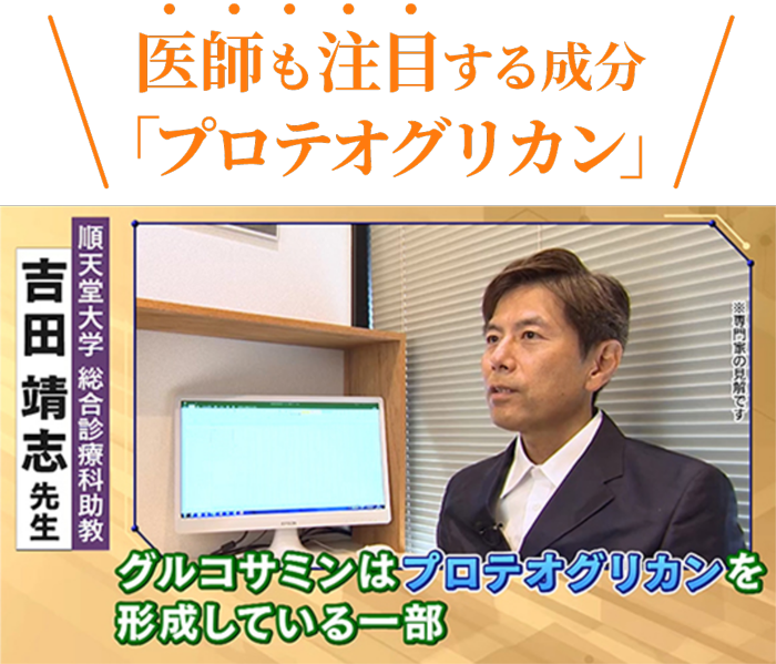 「プロテオグリカン」は「グルコサミン」や「コンドロイチン」よりもすごいパワーを持っていると現役医師も注目している話題の成分なんです。